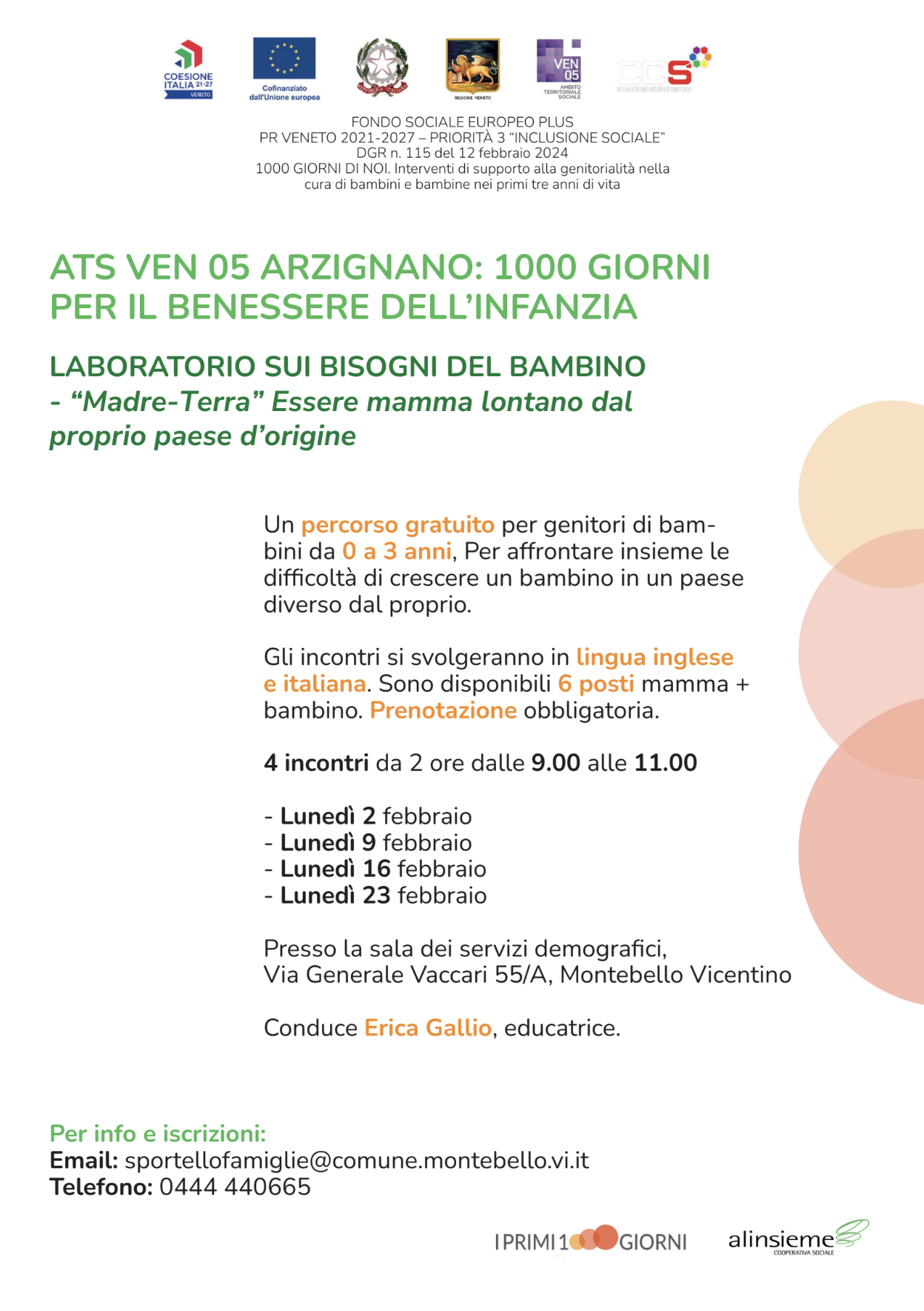 Presso la fondazione scuola materna Dolcetta, scuola dell’infanzia paritaria e nido integrato, Via Lorenzoni, 4 Montecchio Maggiore (VI)