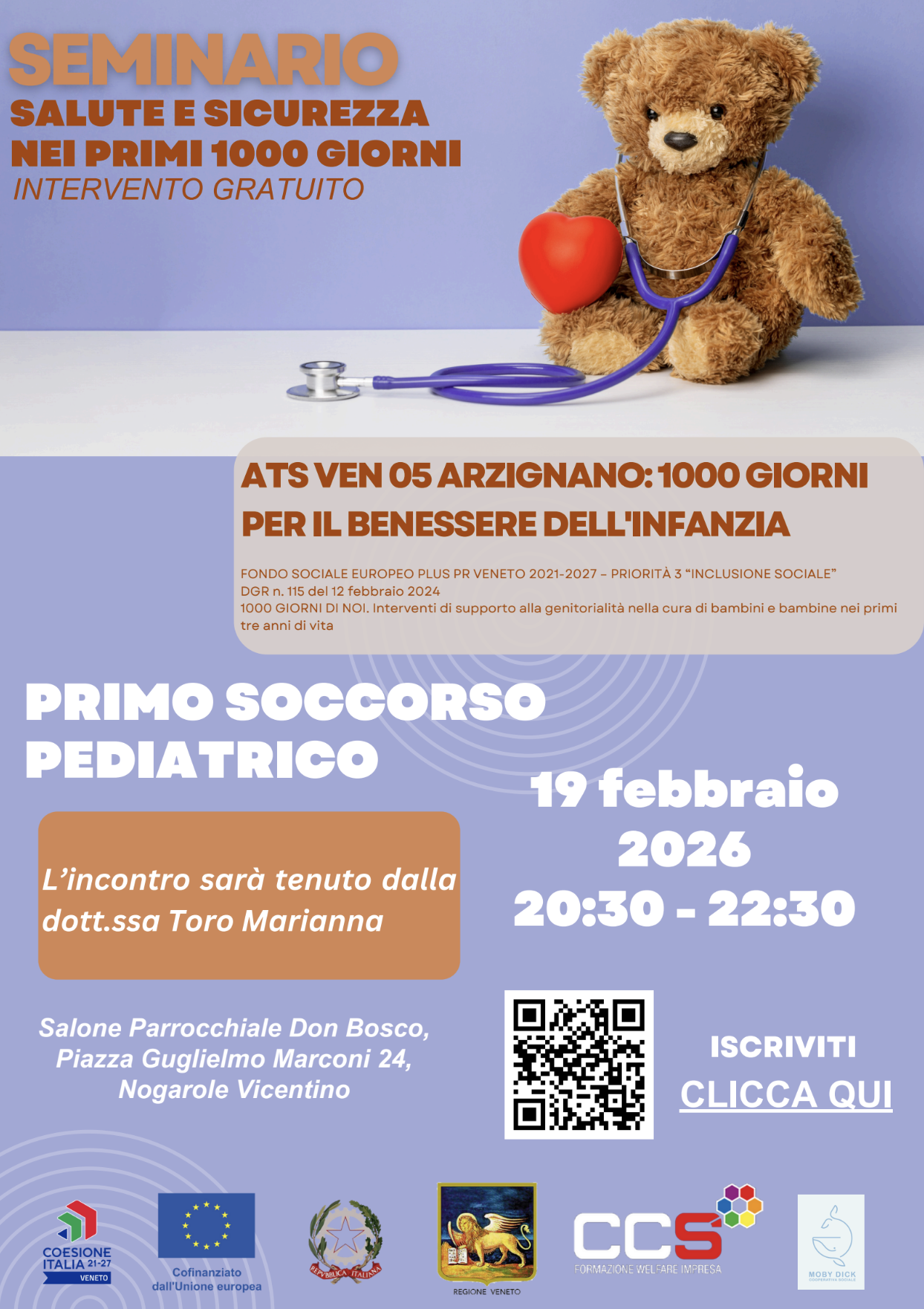 Data, ora e luogo: 19 febbraio 2026, dalle ore 20:30 alle 22:30. Salone Parrocchiale Don Bosco, Piazza Guglielmo Marconi 24, Nogarole Vicentino